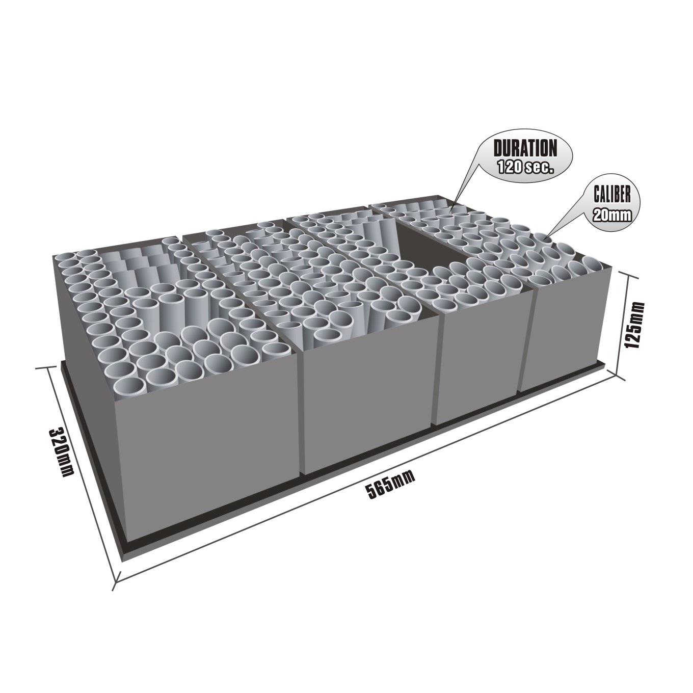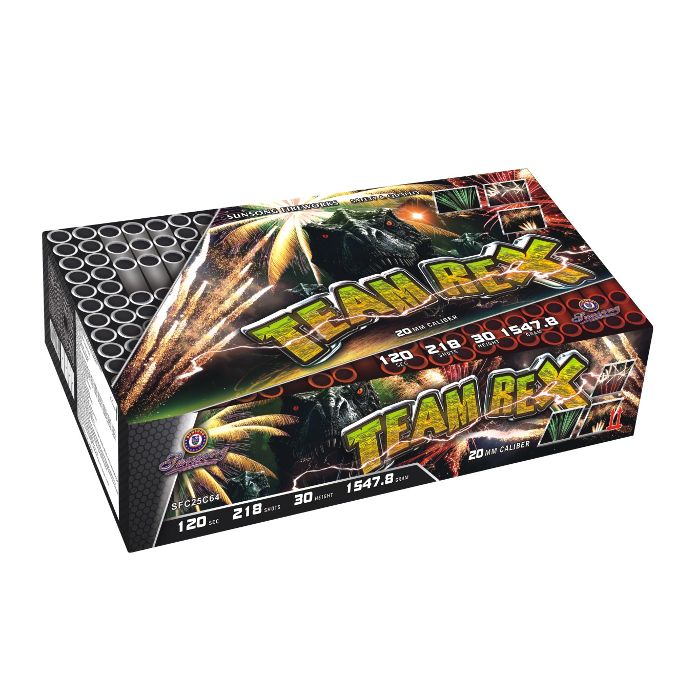 SFC2545M1, Red & Green & Blue with Chrysanthemum; Red Palm with Crackling; Green Strobe Mines with Red Tail to Red Strobe with Chrysanthemum